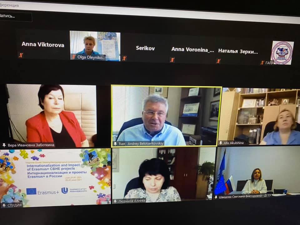 Горно-Алтайский государственный университет принял участие в международной конференции (региональной кластерной встрече) «Интернационализация и проекты Erasmus+ в России», проходившей в онлайн формате 29-30 июня 2021 г. Основными организаторами мероприятия выступили Национальный офис Erasmus+ в России и Нижегородский государственный университет им. Н.И. Лобачевского. В конференции приняли участие более 300 представителей российских и зарубежных вузов. Перед собравшимися выступили А.Н. Левченко, заместитель директора департамента государственной политики в сфере высшего образования Минобрнауки РФ; Ральф Радерс и Франко Бурджио, представители основного координатора Программы Erasmus+ «Высшее образование – повышение потенциала вузов» (CBHE) Европейского исполнительного агентства по образованию и культуре (Брюссель); Лоран Бошеро, Советник по научно-технической политики ЕС, Делегация Европейского Союза в РФ.
