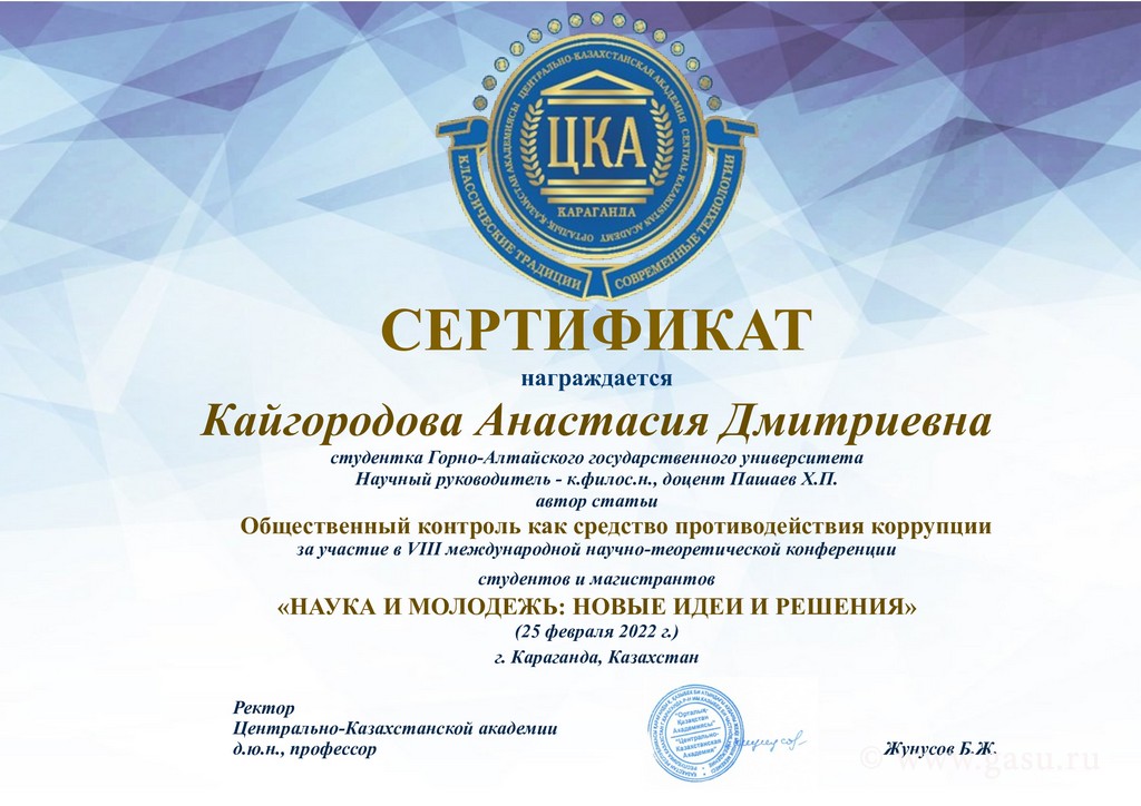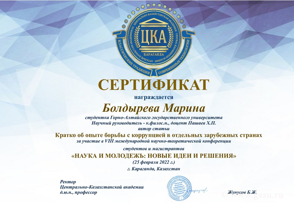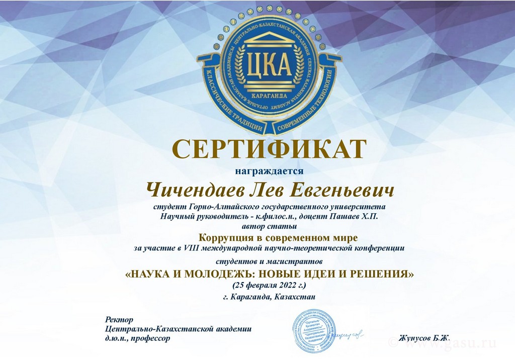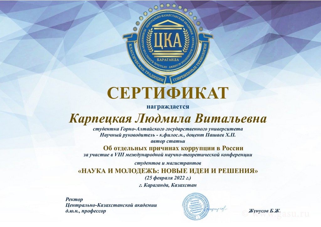 В работе международной научно-теоретической конференции приняли участие представители стран СНГ, в том числе студенты ЭЮФ Горно-Алтайского государственного университета. Наши студенты выступили с докладами на пленарном заседании и секциях конференции по актуальным вопросам противодействия коррупции.