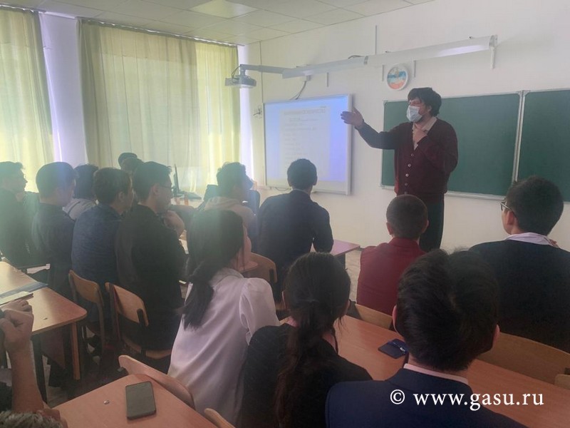 17 марта преподаватели ГАГУ А.Н. Сойенова, И.Ю. Кречетова, Е.В. Кайгородов, Е.В. Губкина и заместитель директора по воспитательной работе Аграрного колледжа Я.Г. Угачева посетили Усть-Канскую среднюю общеобразовательную школу им. Ч.К. Кыдрашева, где встретились с учащимися старших классов. На встрече с девятыми классами присутствовало более 90, а с десятыми и одиннадцатыми классами — более 60 человек.