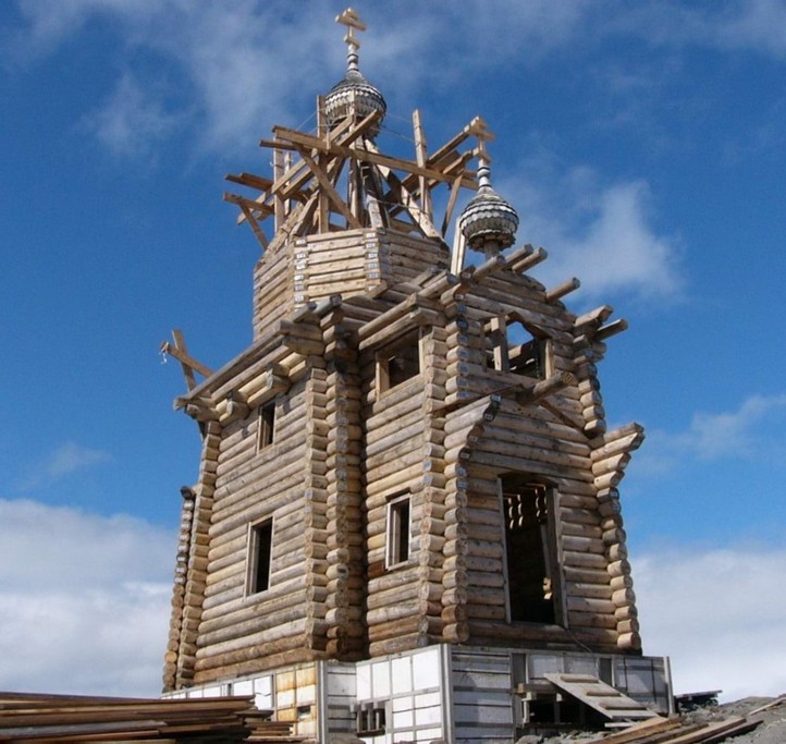 «При разработке проекта учитывались жёсткие природные условия Антарктиды, в качестве материала для храма были выбраны алтайский кедр и лиственница, а также была разработана уникальная конструкция, стягивающая каркас церкви, как это делается при строительстве небоскрёбов. В мае 2002 года бригада алтайских строителей в селе Кызыл-Озёк соорудила храм Святой Троицы. В собранном виде он простоял больше года, а затем его разобрали, каждое брёвнышко храма пронумеровали и отправили на судне к берегам Антарктиды».