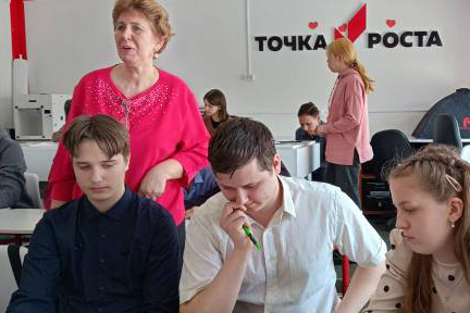 Студенты 2 курса Алена Клешева, Дарина Анакова, Владислав Соёнов, Дмитрий Панов, Ангелина Карасова провели со школьниками работу в группах. Математические задачи олимпиадного уровня, которые решались учащимися под руководством студентов, вызвали живой интерес и бурное обсуждение.