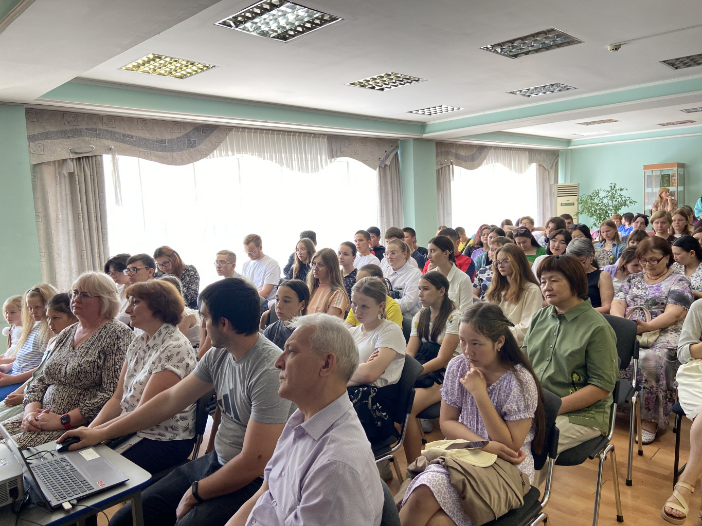 В память о Пушкине школьники и студенты прочитали его стихотворения на русском и алтайском языках, а Надежда Мотько исполнила музыкальную композицию на скрипке.