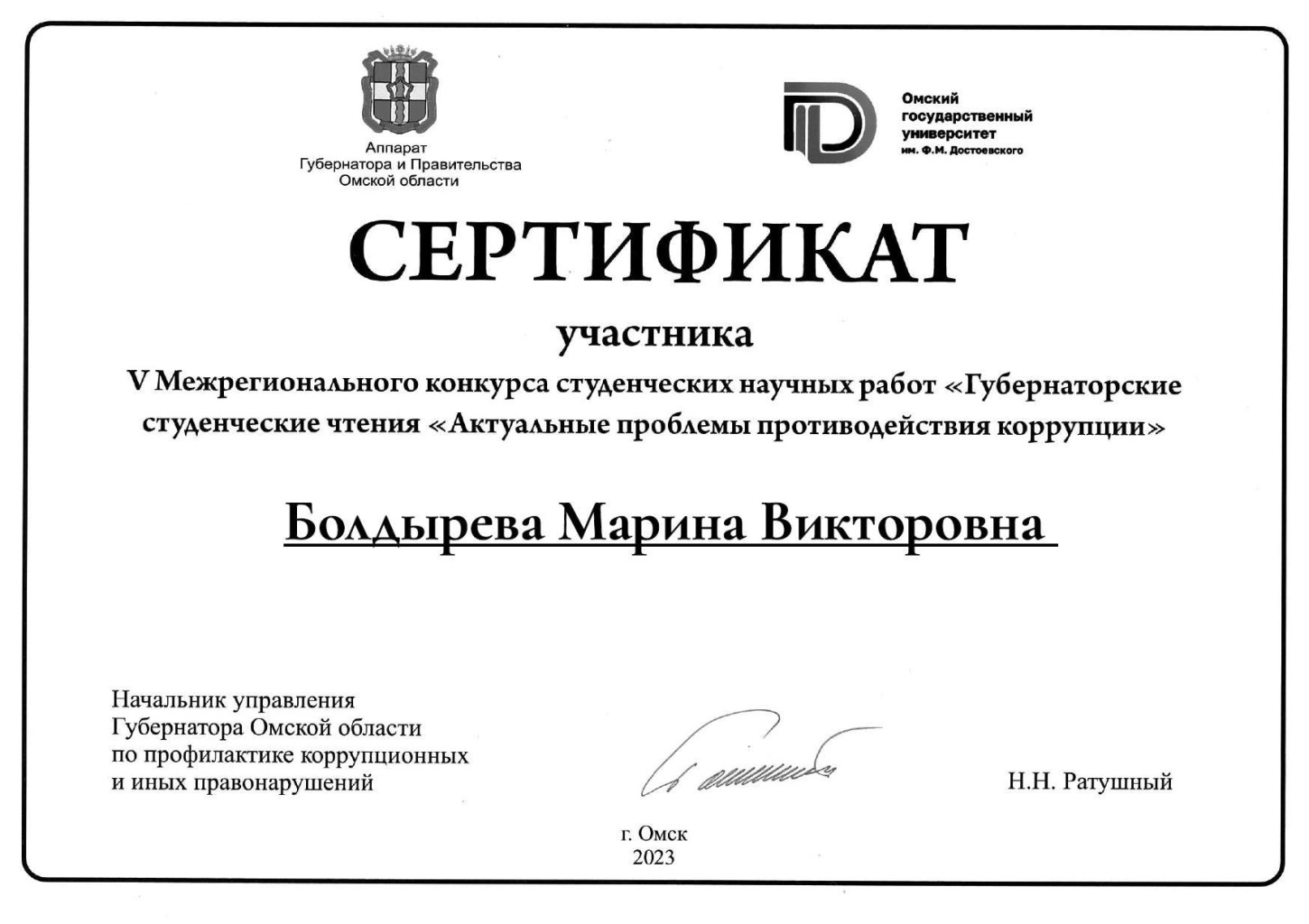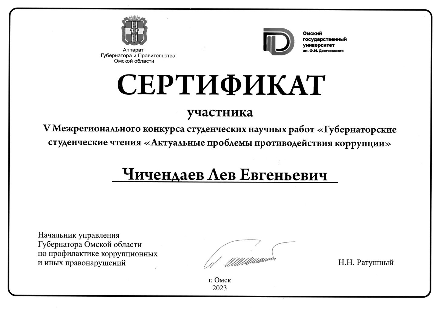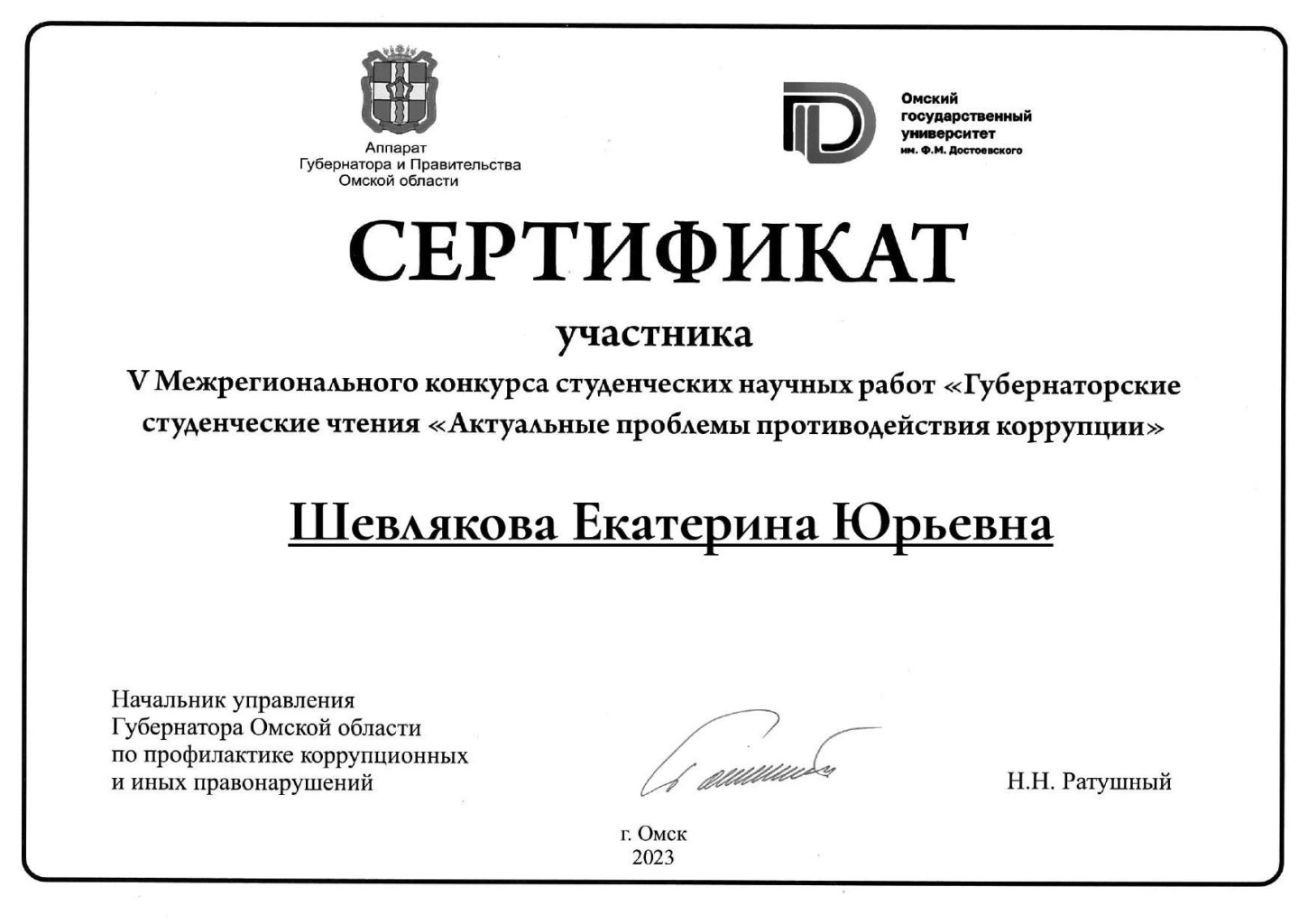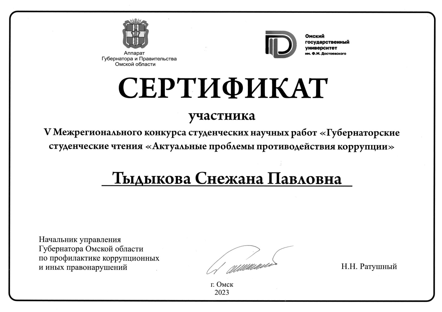 23 ноября 2023 года в здании Правительства Омской области прошел финал V Межрегионального конкурса студенческих научных работ «Губернаторские студенческие чтения «Актуальные проблемы противодействия коррупции», организаторами которого выступали Аппарат Губернатора, Правительство Омской области и Омский государственный университет им. Ф. М. Достоевского.