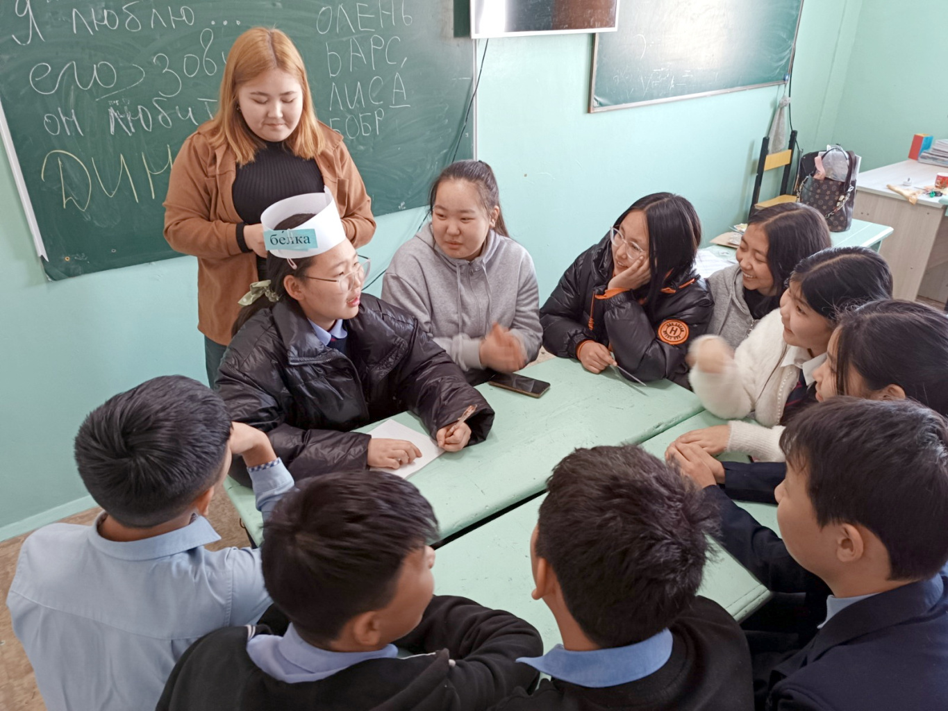 Волонтеры – студенты историко-филологического факультета ГАГУ Тайтова Радмила (710 гр.), Бильтешева Динара (711 гр.), Кудачинова Эмилия (711 гр.) и Павлинова Маргарита (712 гр.) проводят занятия в школах Ховда. Русский язык преподается в Монголии как обязательный второй иностранный в 7 - 9 классах и как факультативный в 10 - 12 классах. В 7 - 8 классах по 2 урока в неделю, в 9 классе – по 3 урока в неделю. При изучении русского языка возникают проблемы с отсутствием реального общения на нём, излишняя теоретизированность учебников, отсутствие интерактивных и игровых заданий. Для устранения этих проблем наши волонтеры и направляются в Монголию, чтобы дать учащимся опыт общения с носителями языка. Проводимые занятия базируются на интерактивных, игровых методах работы, чтобы продемонстрировать, что и русский язык можно изучать весело и увлекательно. Также особое внимание уделяется актуальной страноведческой информации о регионах России, промышленности, науке, т.к. по школьной программе учащиеся практически никакой информации о жизни в России не получают.