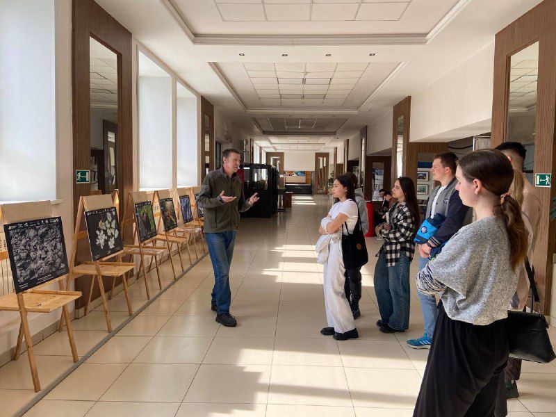 Первыми организованной группой фотовыставку посетили студенты-социологи ЭЮФ. Экскурсия сопровождалась интересным рассказом доцента кафедры биологии и химии Малкова Петра Юрьевича, который во время своих многочисленных экспедиций побывал практически во всех уголках нашей республики.