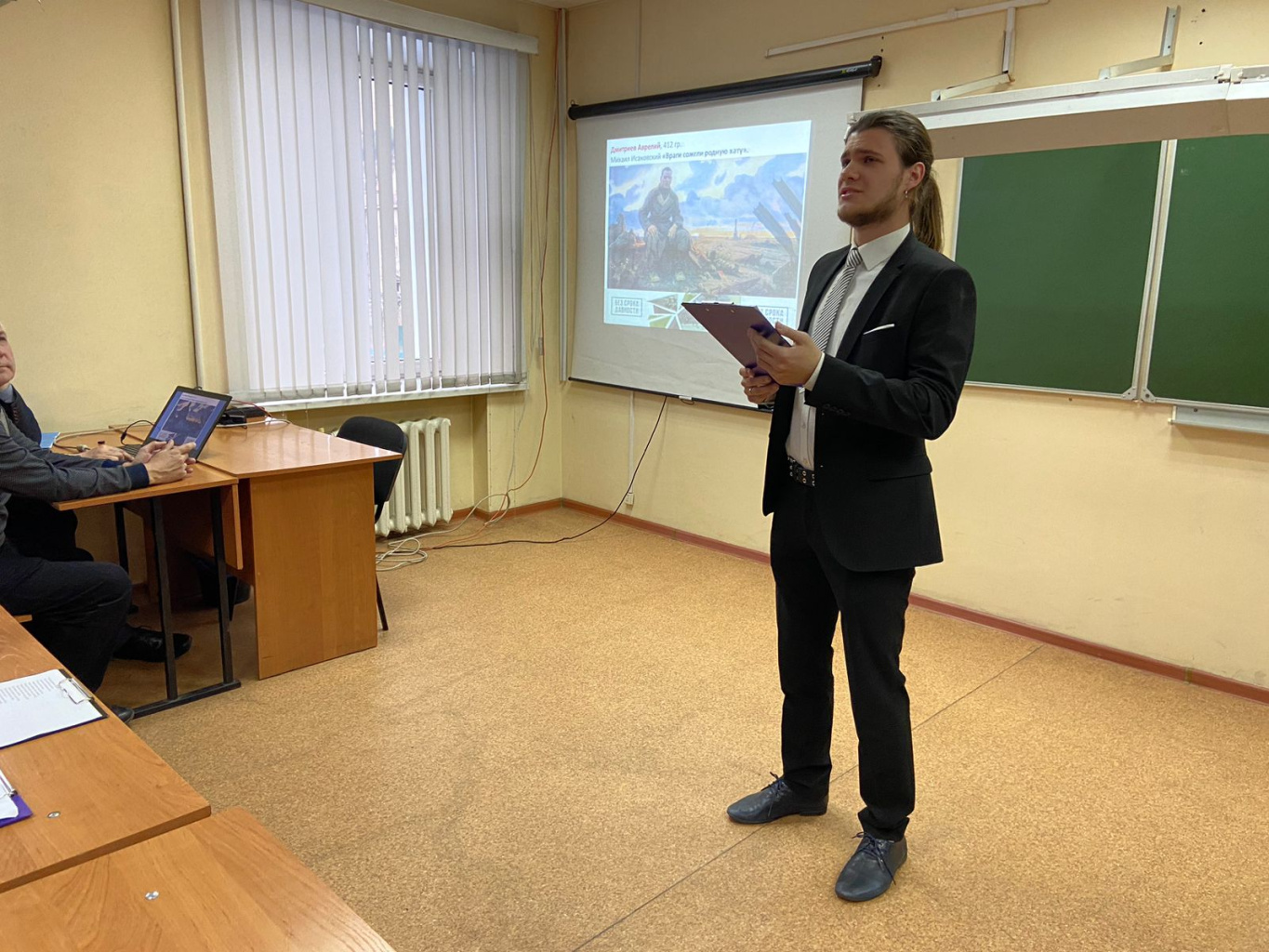 Студенты читали стихи и пели тематические песни: Мултуева Кристина «Чулочки», Шушаков Иван «Мальчик из села Поповки», Дмитриев Аврелий «Враги сожгли родную хату…», Сафронова Владислава «На минском шоссе», Воротникова Полина «Журавли», Пак Наталья «О России» и «Блокадный вальс».