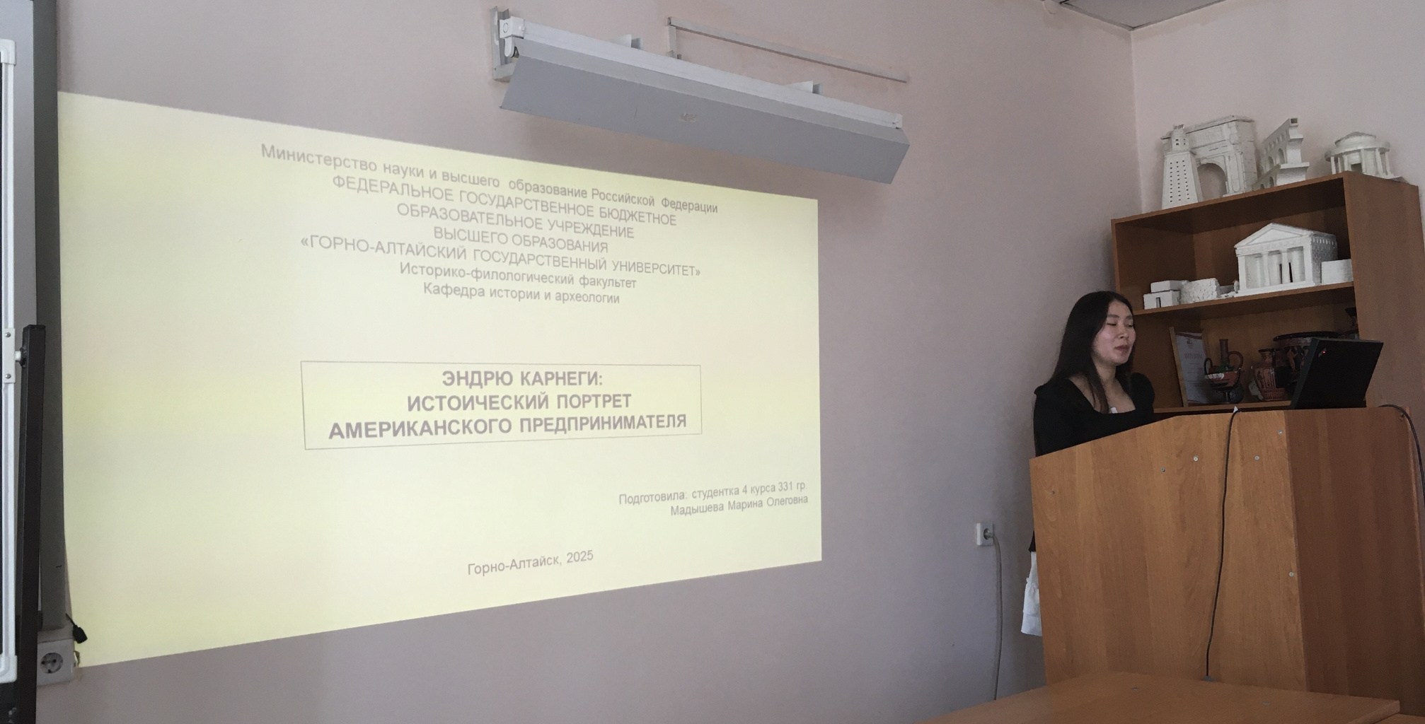 2 место заняла студентка 331 группы Марина Олеговна Мадышева, выступавшая с докладом «Эндрю Карнеги: исторический портрет американского предпринимателя», научный руководитель к.и.н., доцент Ложкина Н.Н.