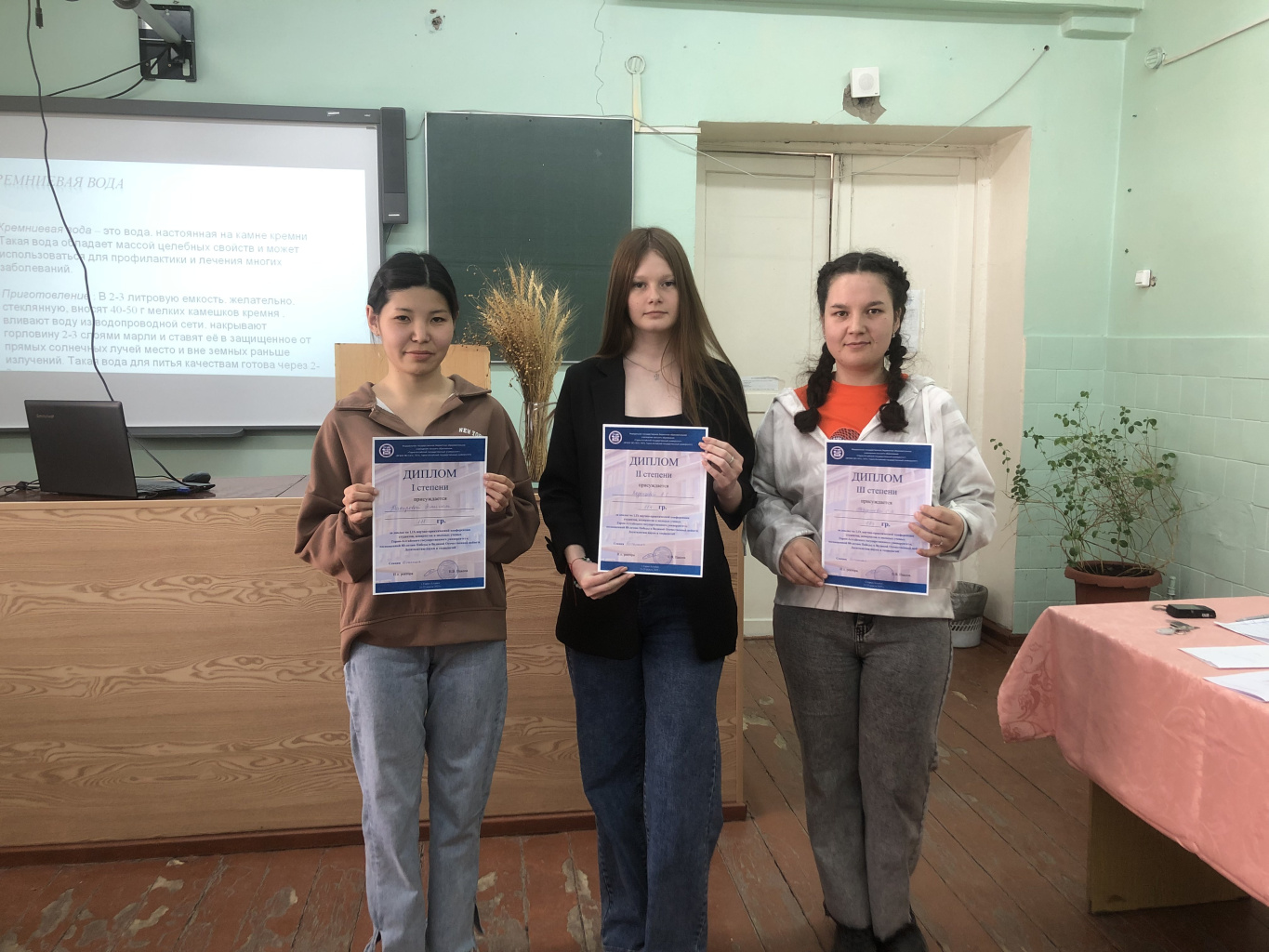 1-е место – В.А. Басова, 11 класс МБОУ «Лицей № 1 г. Горно-Алтайска» с докладом «Влияние полива различными источниками воды на рост и развитие растений» (научный руководитель - учитель биологии Софина М.П.);
